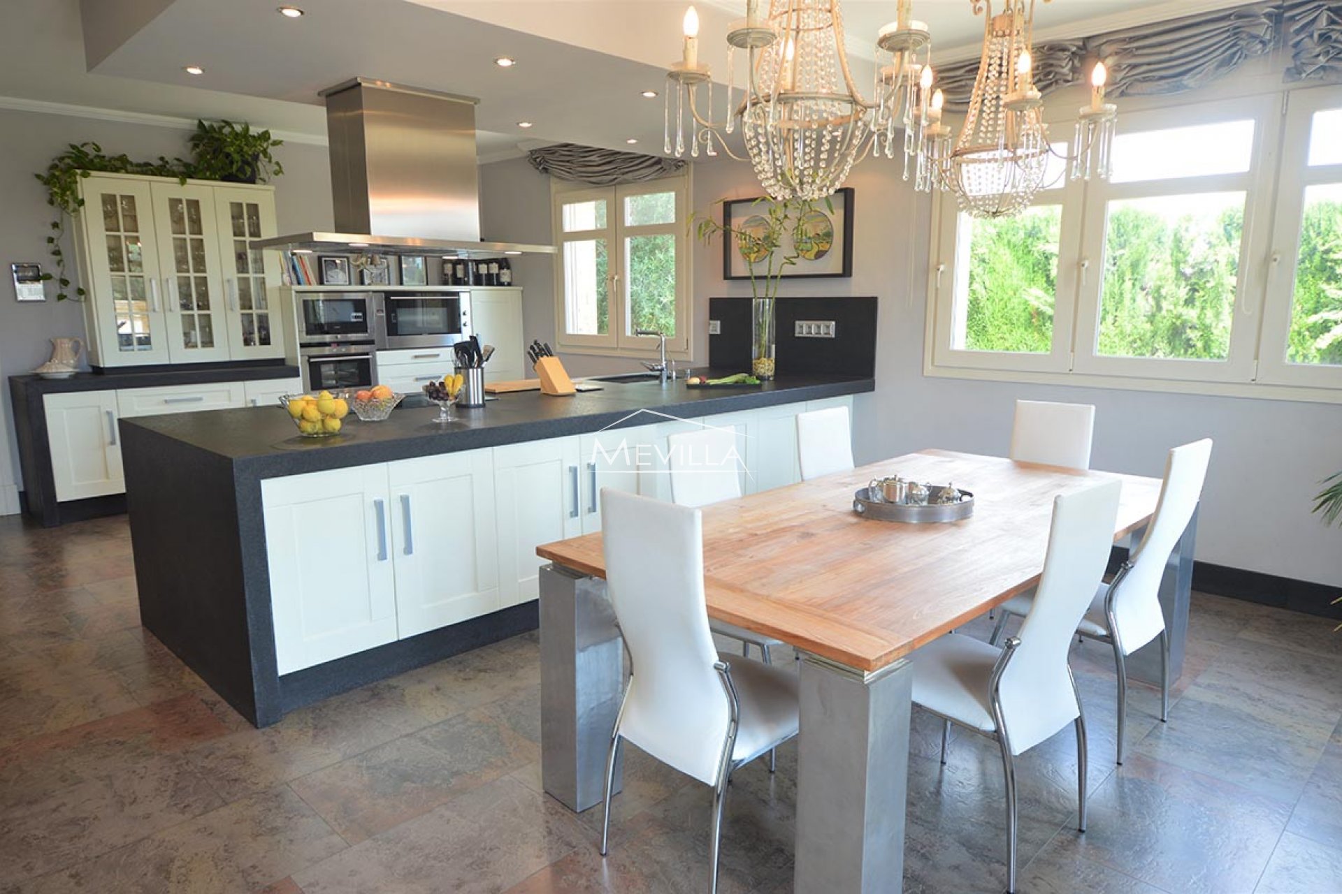 Cette demeure dispose d'un total de 6 grandes chambres, toutes avec salle de bains et dressing, d'un total de 8 salles de bains, d'un grand salon, d'une fabuleuse cuisine indépendante de style moderne, dans laquelle il convient de mentionner les plans de travail en granit noir du Zimbabwe.